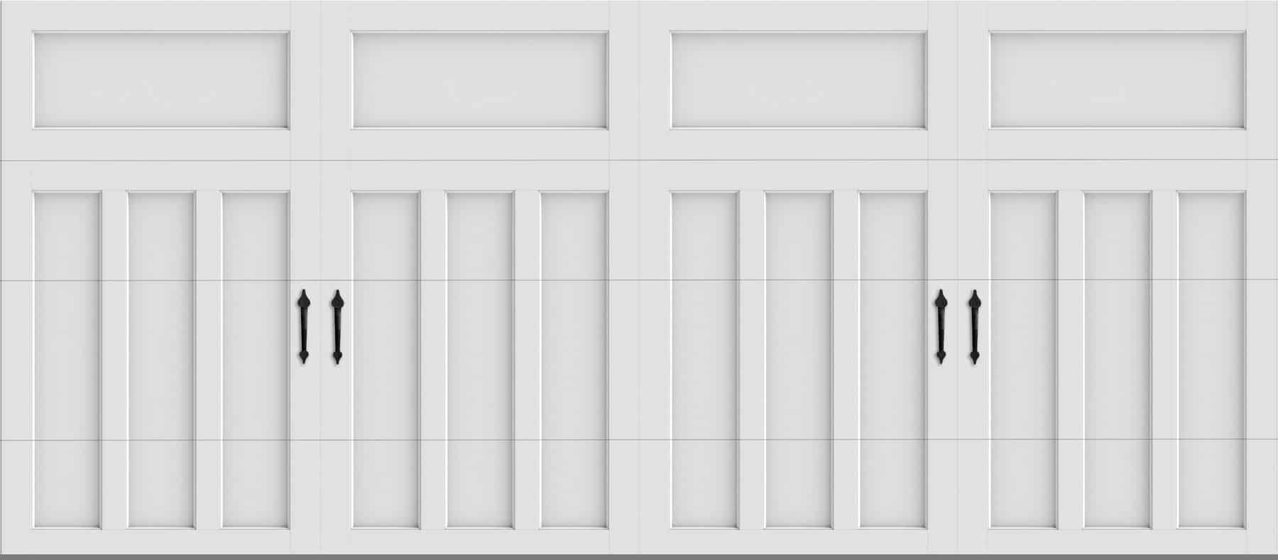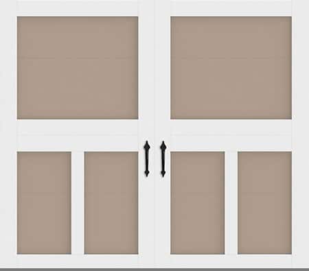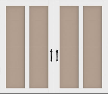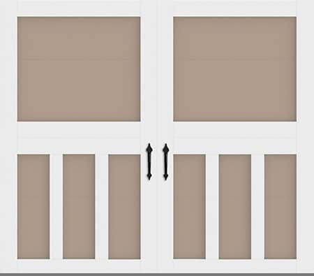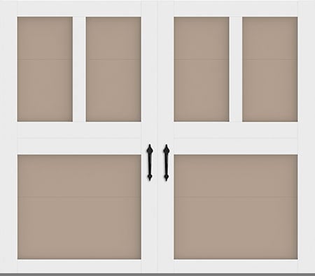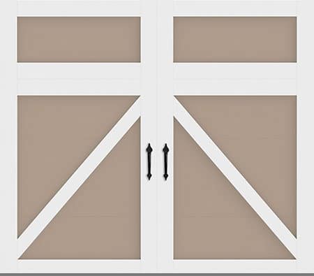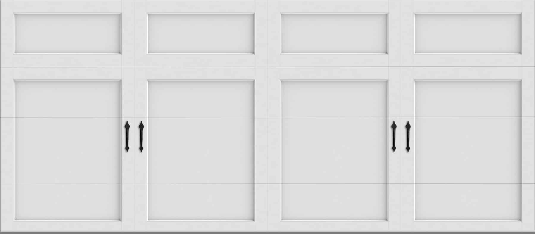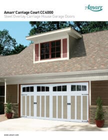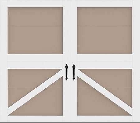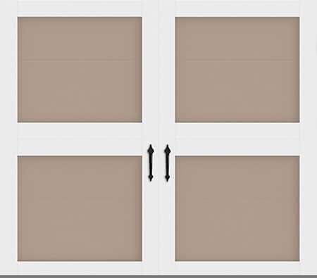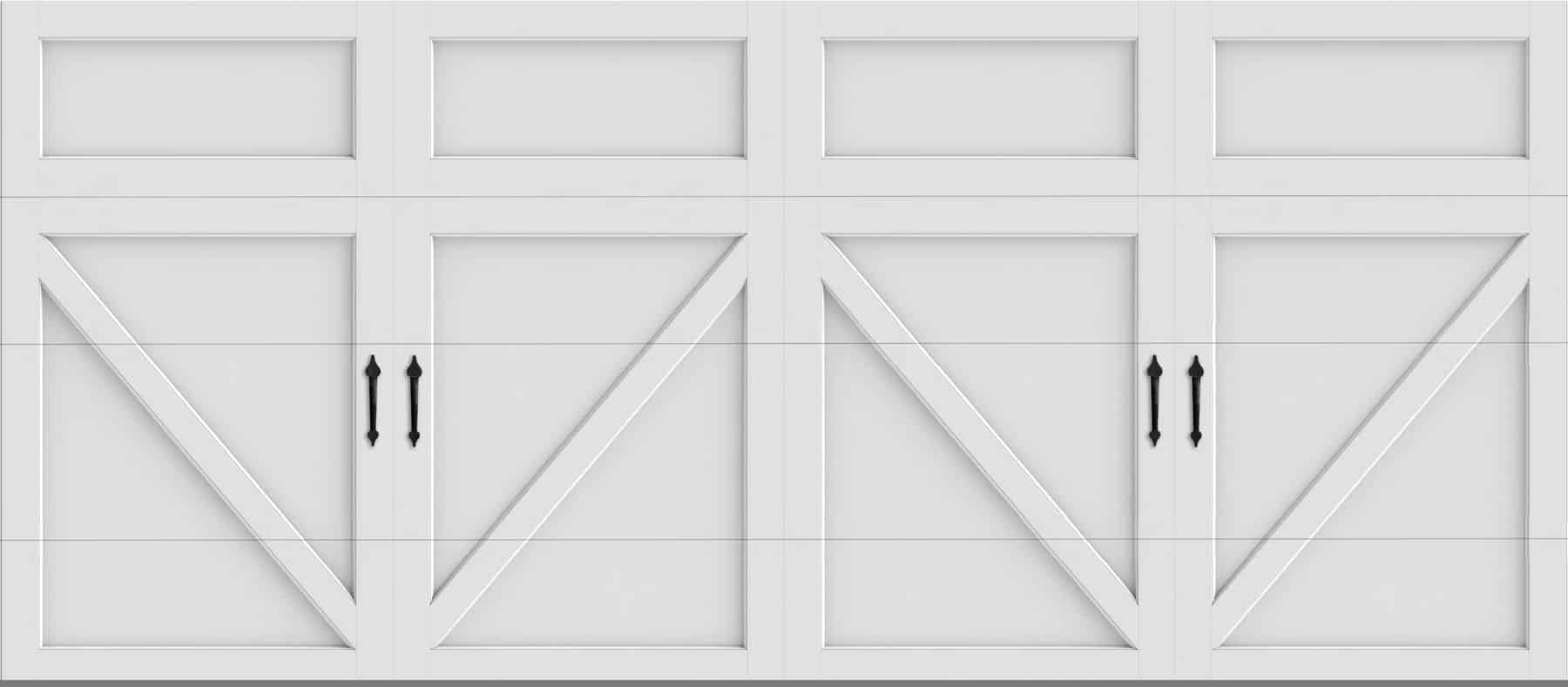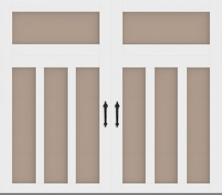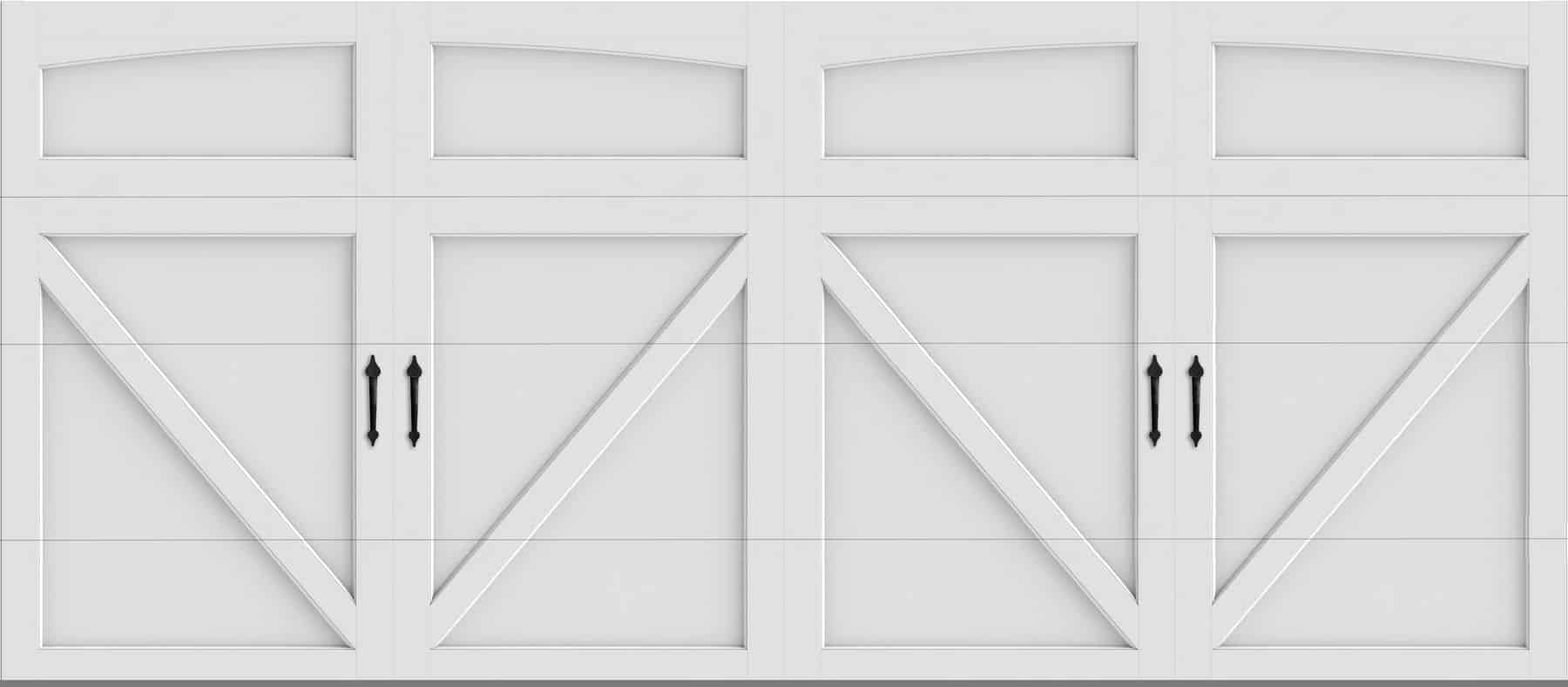 Distinctly defined door designs built with durable composite overlay trim and insulated steel-backed sections that provide energy efficiency, noise reduction and beauty to your home. 18 carriage house designs with distinctive 5/8” thick composite overlay trim; Overlay made from sustainable, reclaimed wood fiber and thermoplastic polymer that resists rot, decay and fungal growth; Large rectangular and arched window designs are built in 24” top sections with 5/8” thick decorative window grilles. Available in 4 colors; Optional double-strength clear, obscure or insulated glass. Available with decorative hardware options.