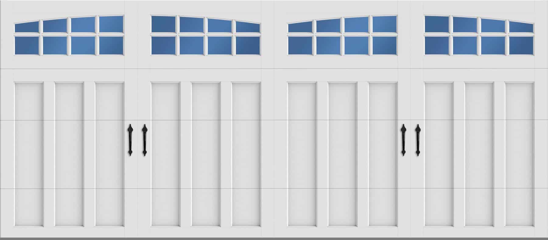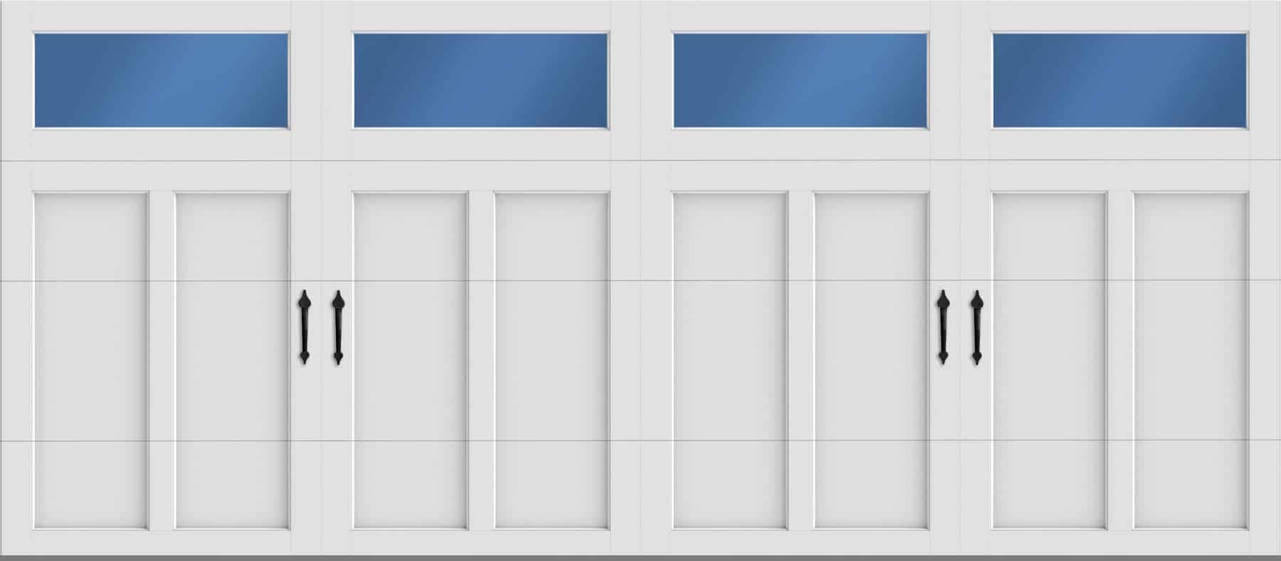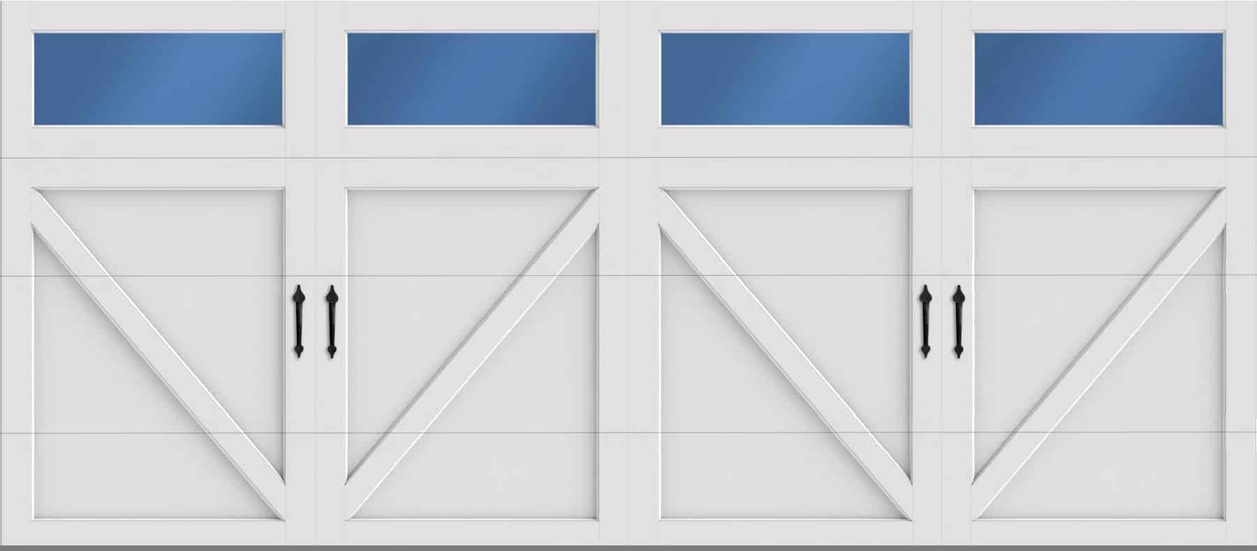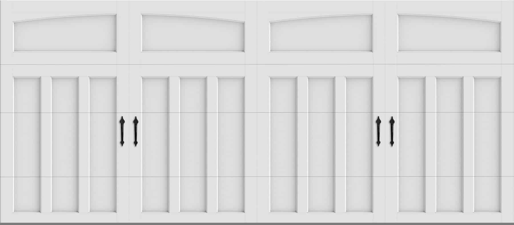 Distinctly defined door designs built with durable composite overlay trim and insulated steel-backed sections that provide energy efficiency, noise reduction and beauty to your home. 18 carriage house designs with distinctive 5/8” thick composite overlay trim; Overlay made from sustainable, reclaimed wood fiber and thermoplastic polymer that resists rot, decay and fungal growth; Large rectangular and arched window designs are built in 24” top sections with 5/8” thick decorative window grilles. Available in 4 colors; Optional double-strength clear, obscure or insulated glass. Available with decorative hardware options.