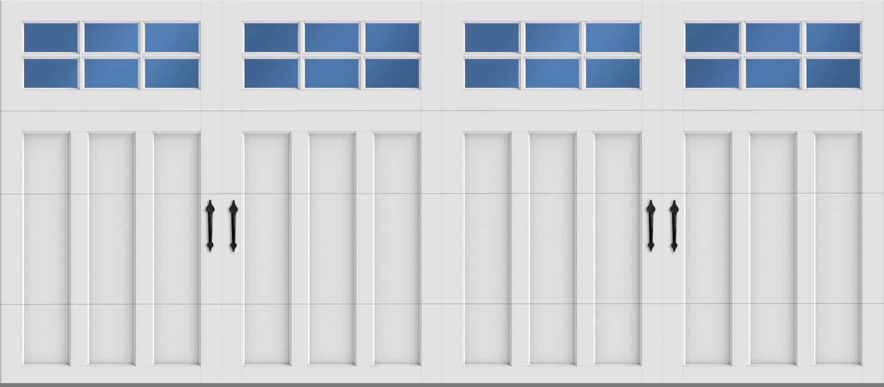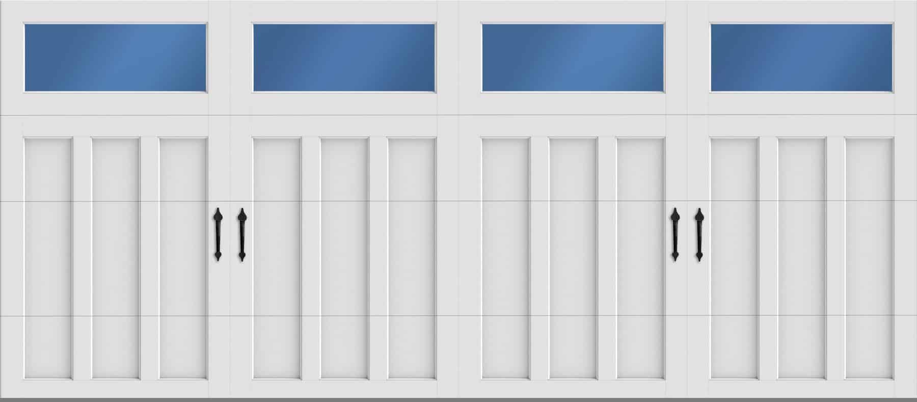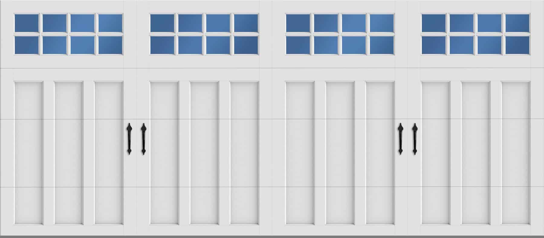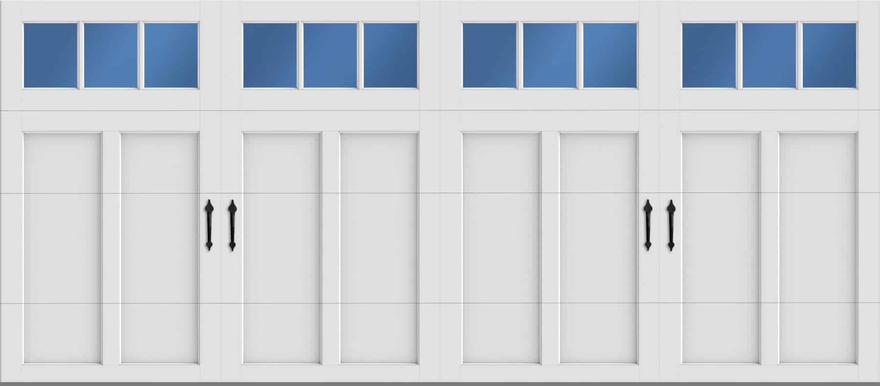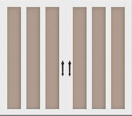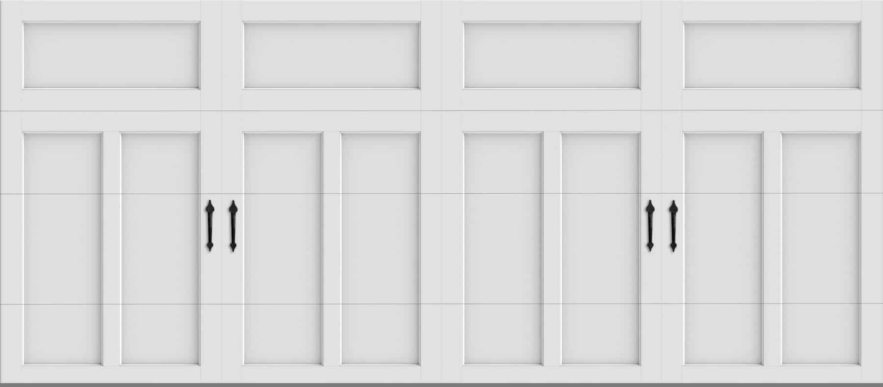 Distinctly defined door designs built with durable composite overlay trim and insulated steel-backed sections that provide energy efficiency, noise reduction and beauty to your home. 18 carriage house designs with distinctive 5/8” thick composite overlay trim; Overlay made from sustainable, reclaimed wood fiber and thermoplastic polymer that resists rot, decay and fungal growth; Large rectangular and arched window designs are built in 24” top sections with 5/8” thick decorative window grilles. Available in 4 colors; Optional double-strength clear, obscure or insulated glass. Available with decorative hardware options.