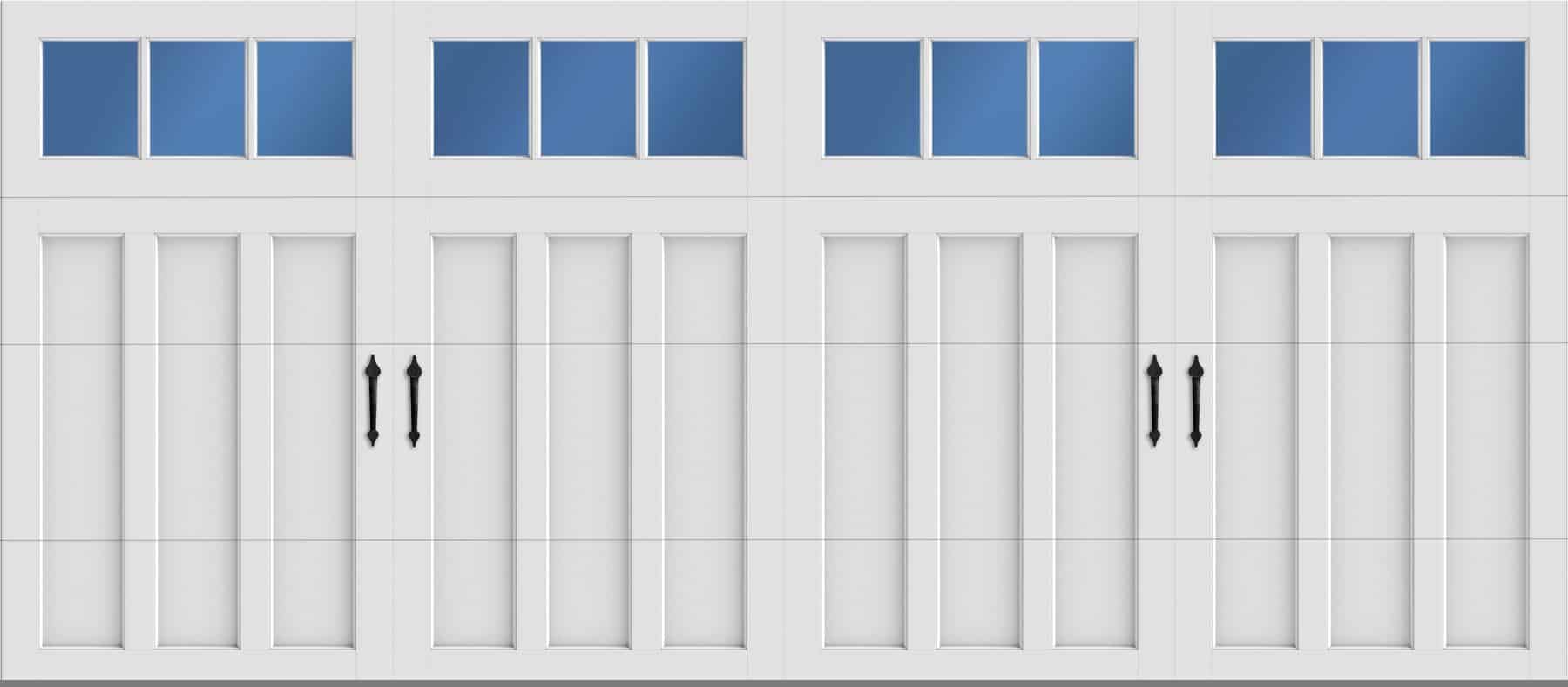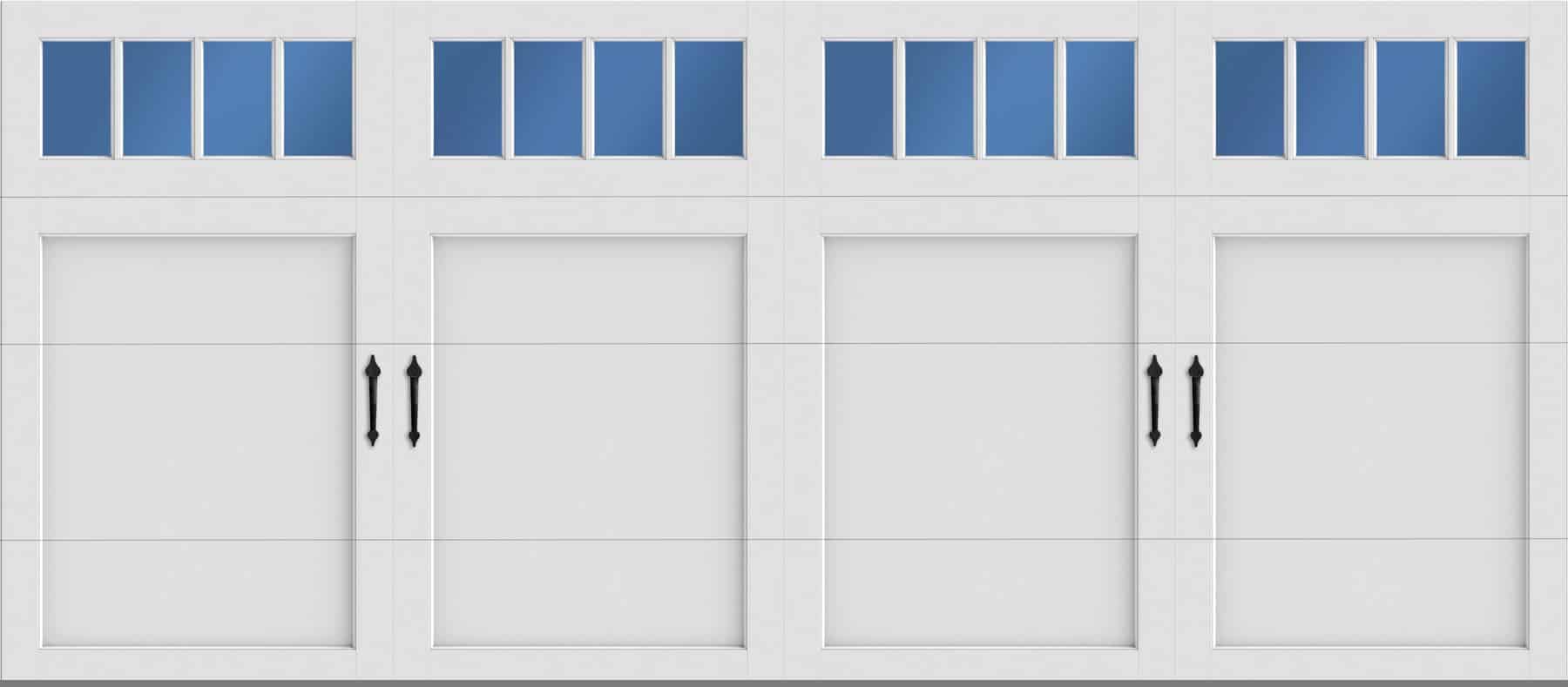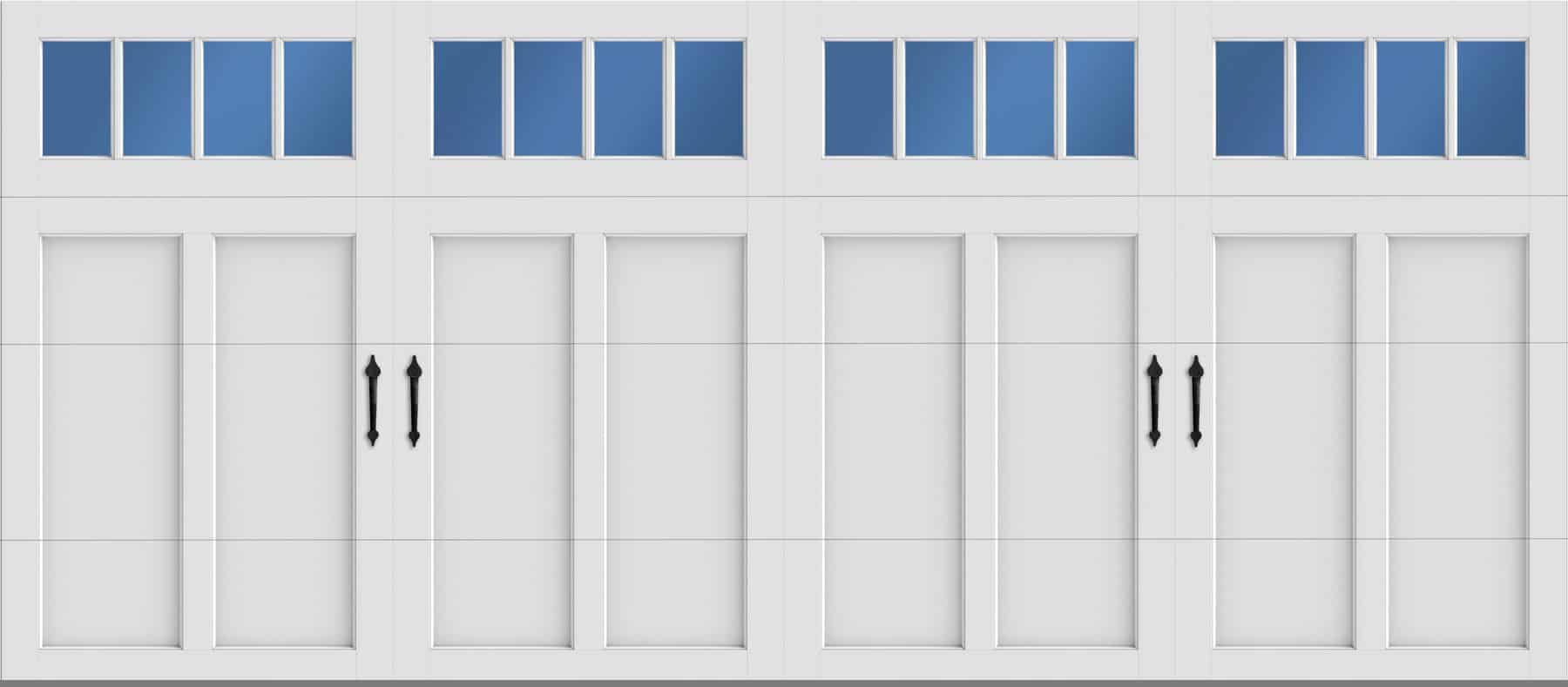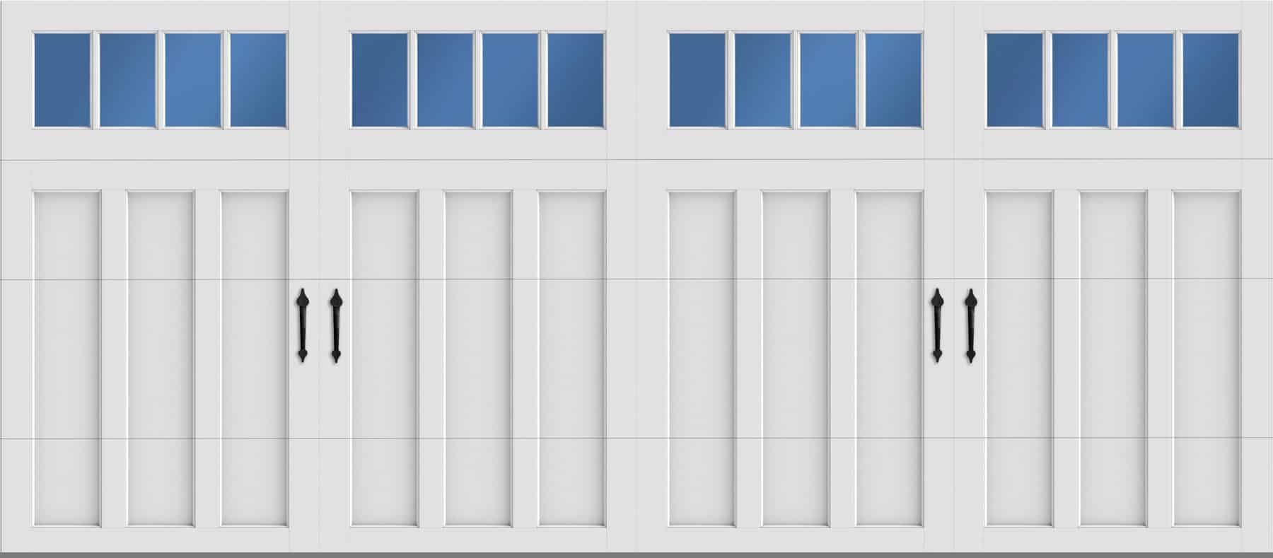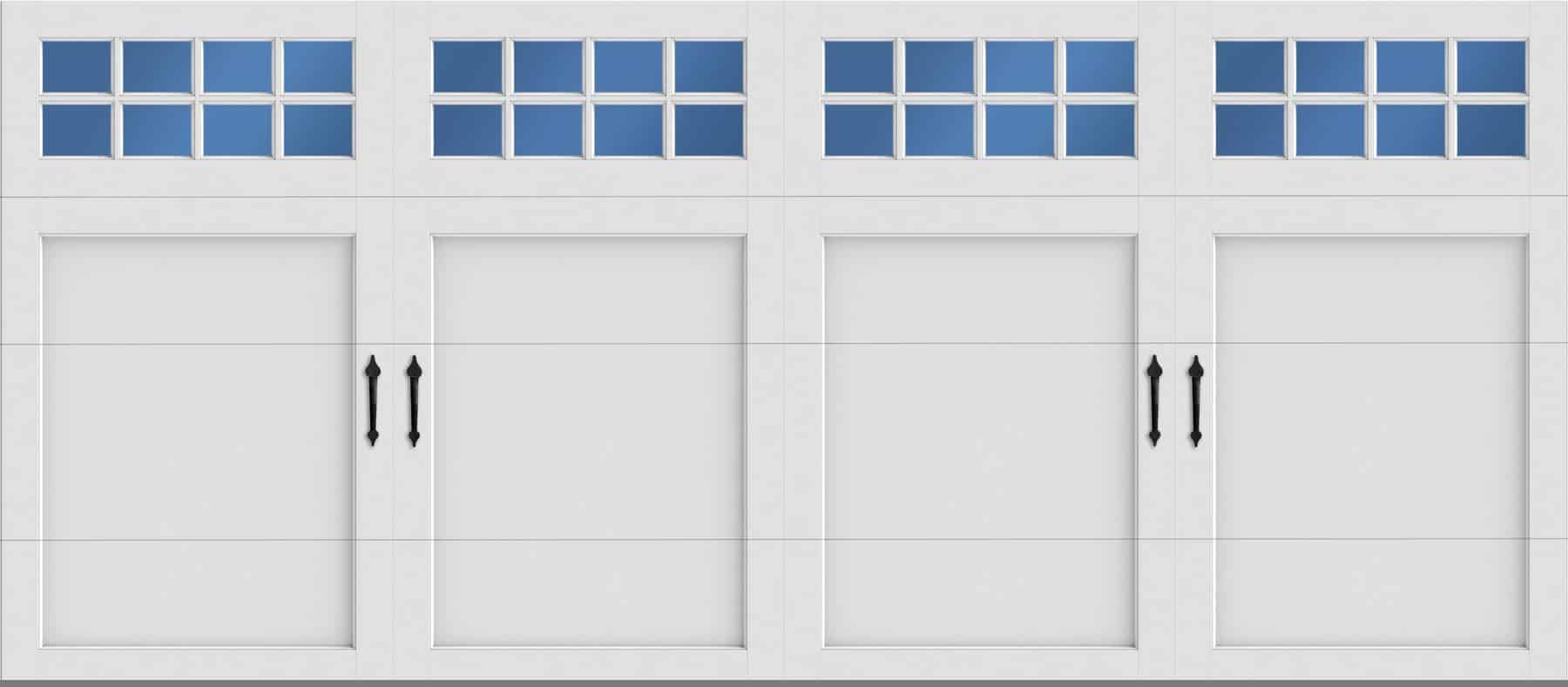 Distinctly defined door designs built with durable composite overlay trim and insulated steel-backed sections that provide energy efficiency, noise reduction and beauty to your home. 18 carriage house designs with distinctive 5/8” thick composite overlay trim; Overlay made from sustainable, reclaimed wood fiber and thermoplastic polymer that resists rot, decay and fungal growth; Large rectangular and arched window designs are built in 24” top sections with 5/8” thick decorative window grilles. Available in 4 colors; Optional double-strength clear, obscure or insulated glass. Available with decorative hardware options.