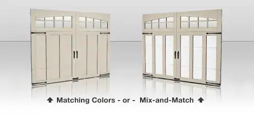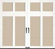 Authentic looking insulated steel and composite carriage house garage doors.
